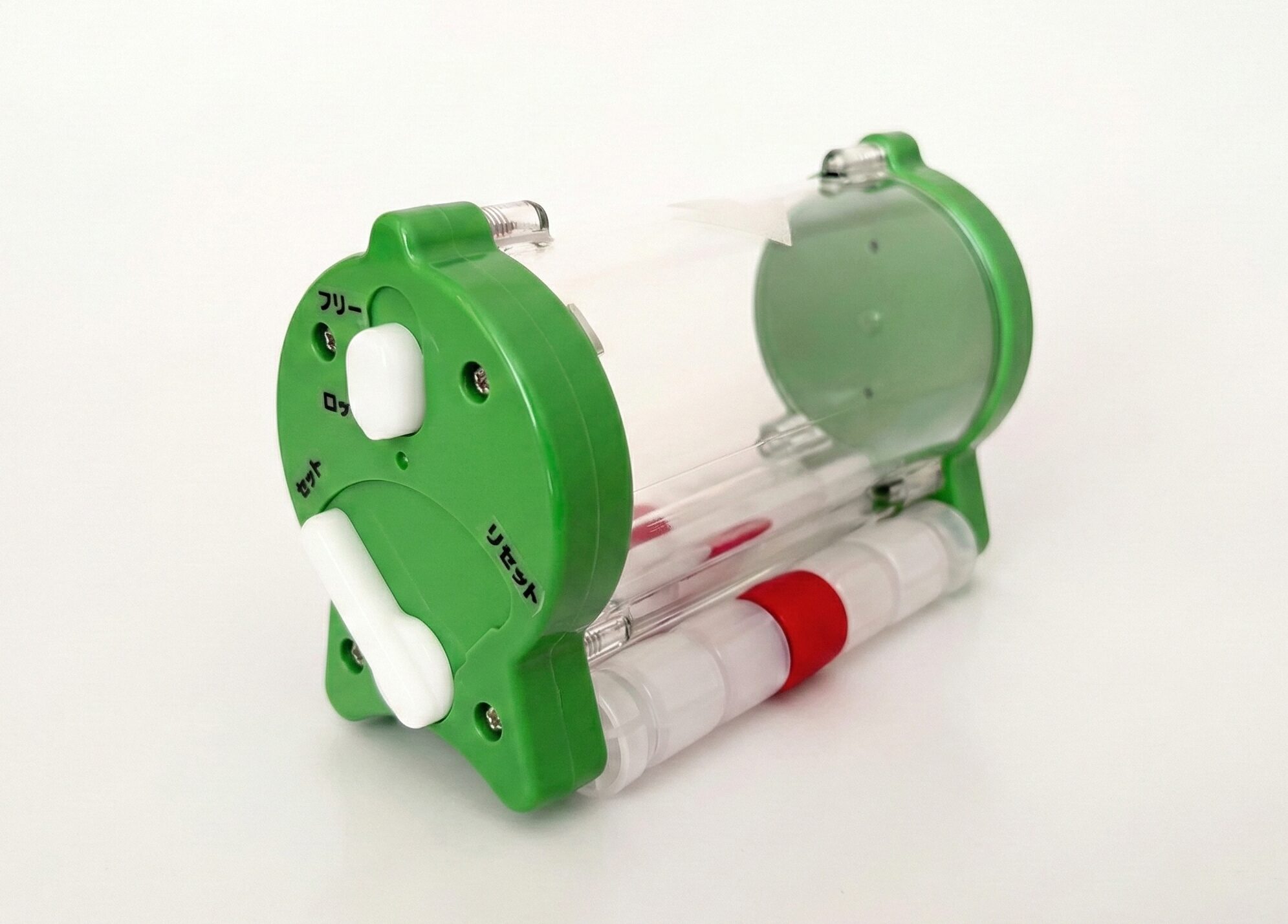 操作はシンプルに設計。包帯をセットして、ロックスイッチと切り替えレバーを操作して巻き進めるだけです。複雑な設定は不要で、セットから巻き終わりまで驚くほどスムーズに完了します。